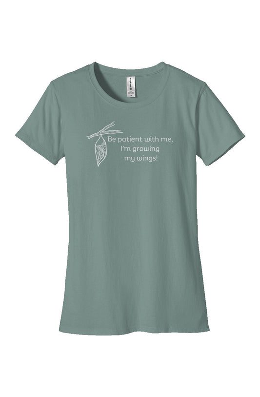 "Be patient with me, I'm growing my wings" Chrysalis 100% Organic Cotton Women's T Shirt
